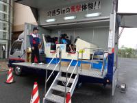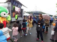 前日からの雨で、当日の天候が心配されましたが、朝には雨もあがり一気に天候が回復したこともあり、用意した周南こども通貨「GENKI」200枚は昼過ぎにはなくなりました。このほかにも、「運転席体験」や、「ペーパークラフトづくり体験」など行われ、多くの親子連れでにぎわいました。